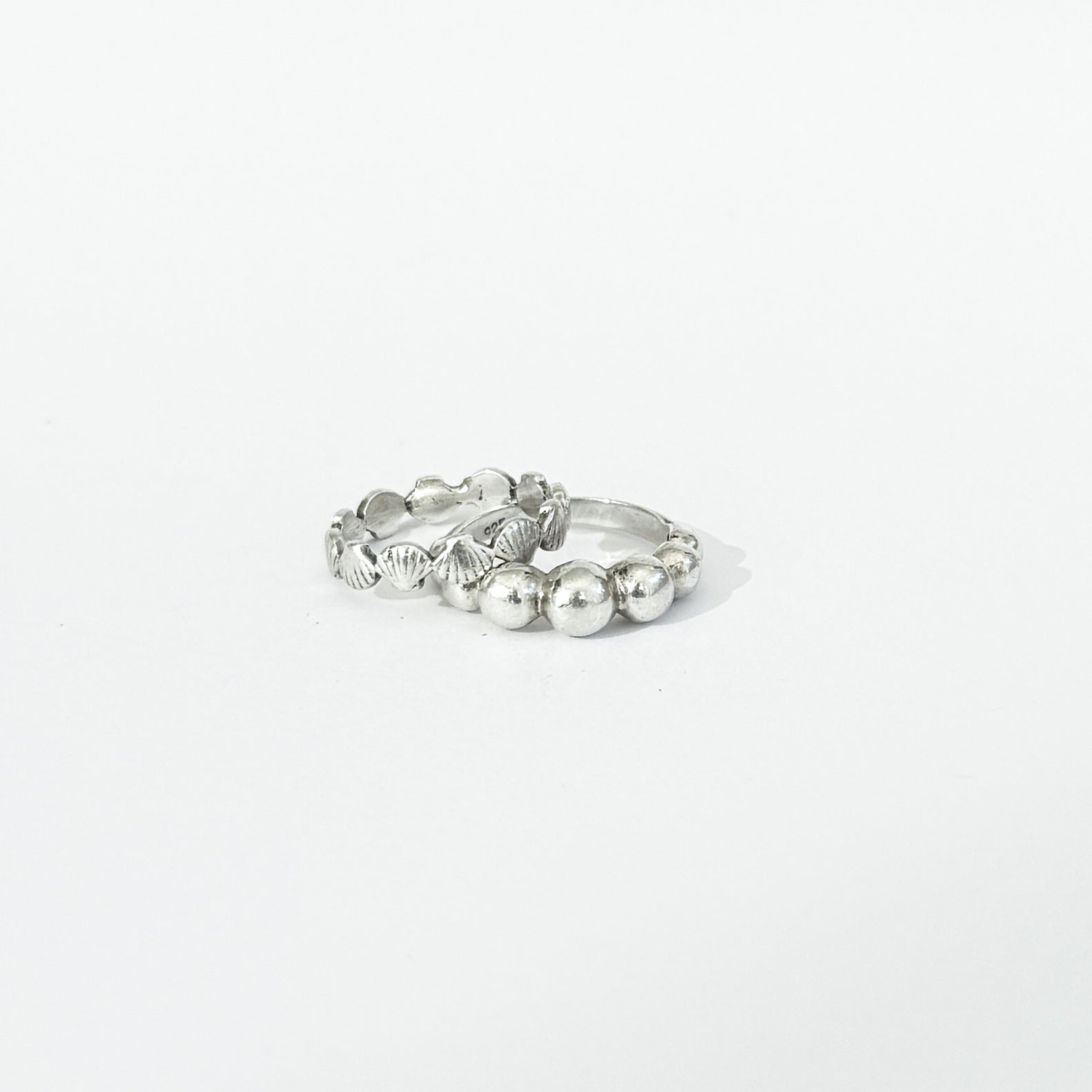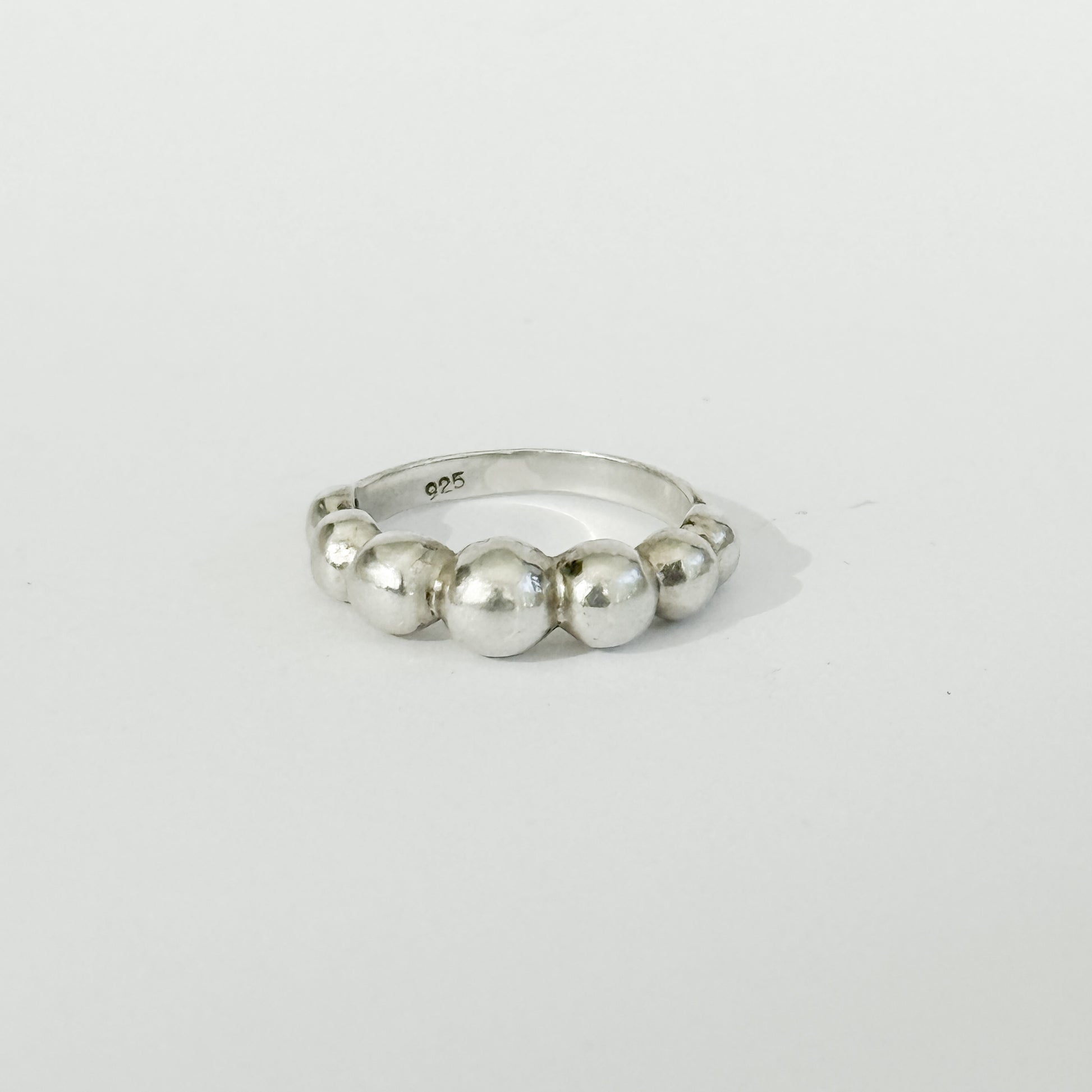 Made up of little silver “bubbles” wrapped all the way around, this piece is bold, fun, and surprisingly elegant. It’s the kind of ring that makes a statement on its own but also stacks beautifully with other rings in your collection.