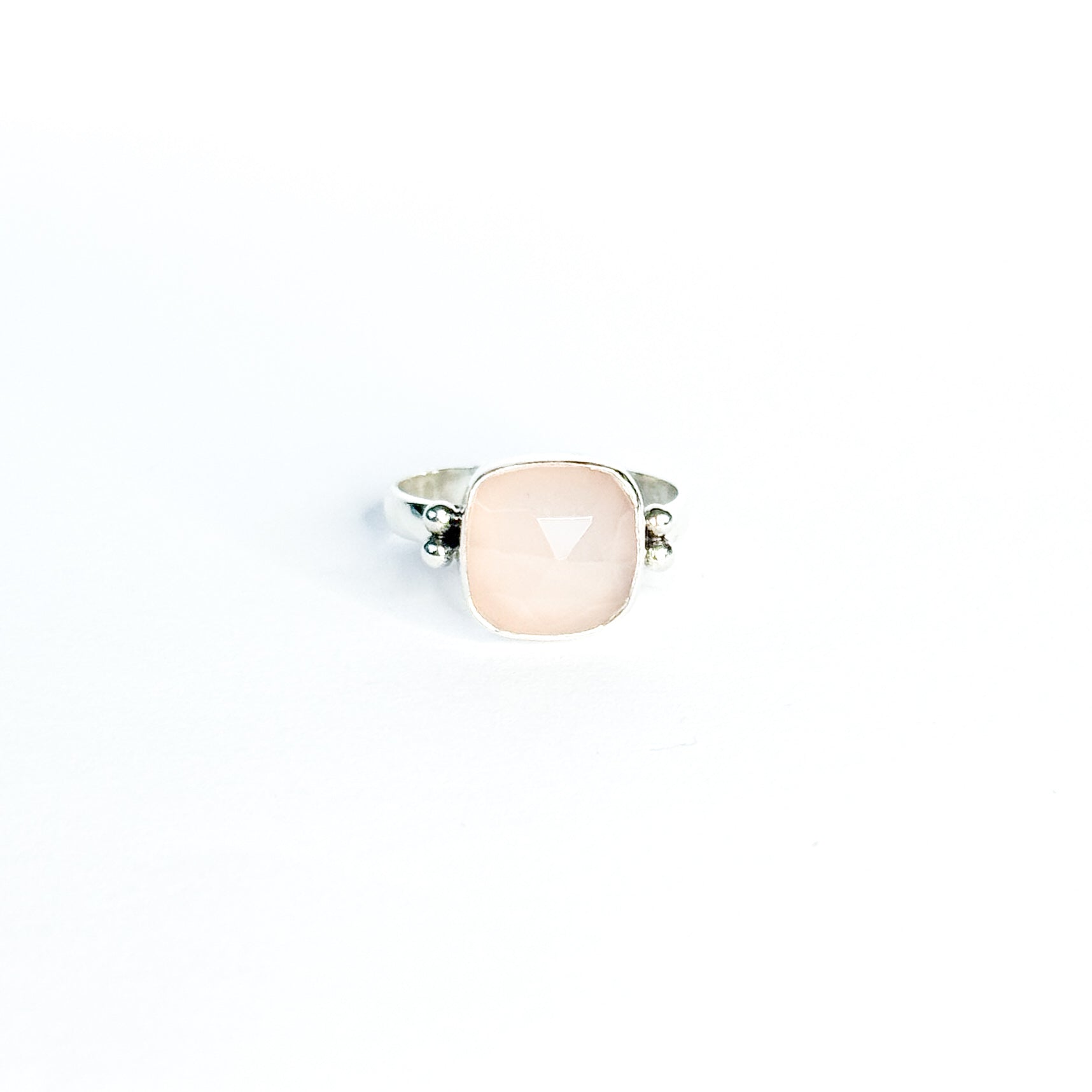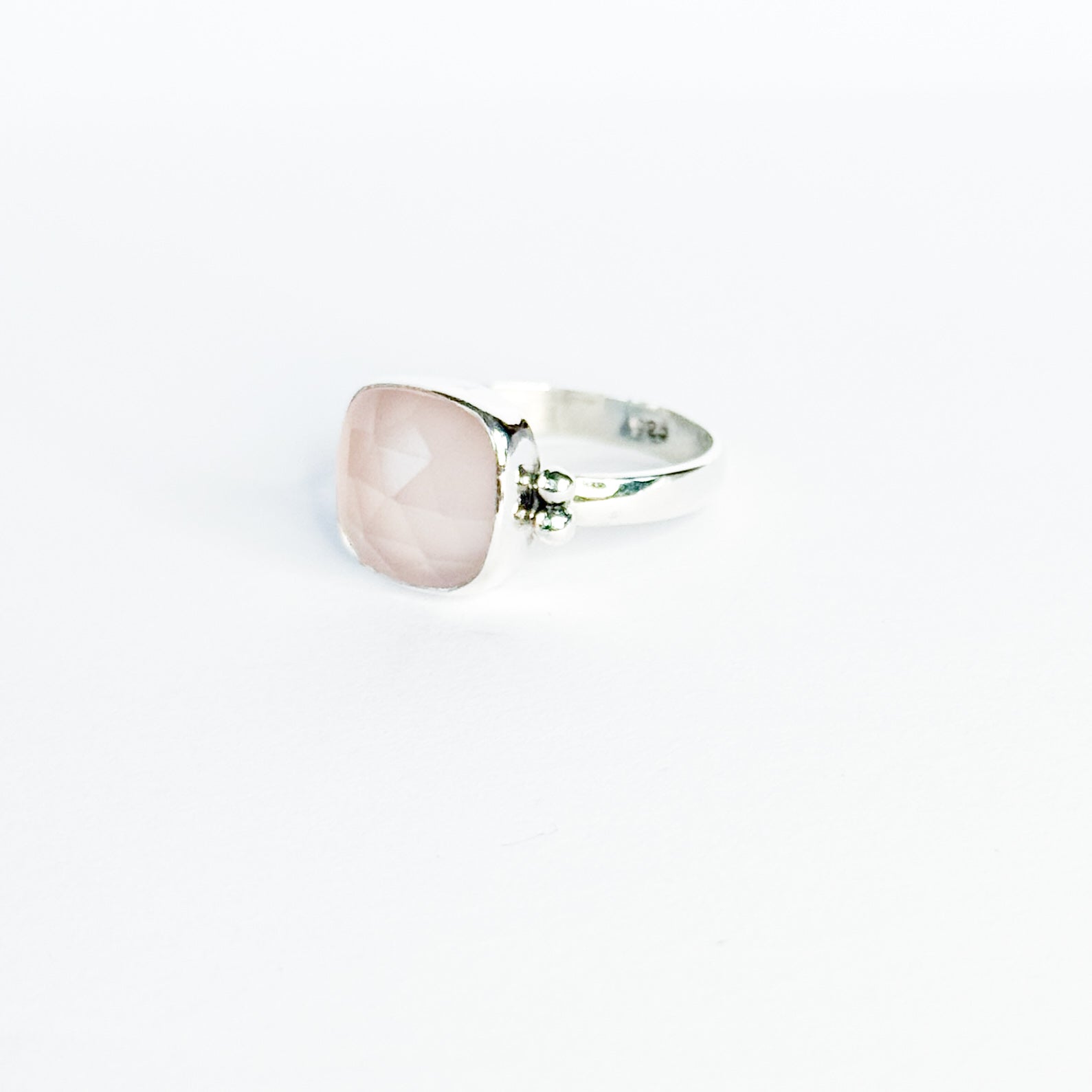The Sera Ring is simple, soft, and so elegant. The faceted pink chalcedony has the prettiest glow — not too bright, just a gentle blush tone that looks beautiful on everyone.